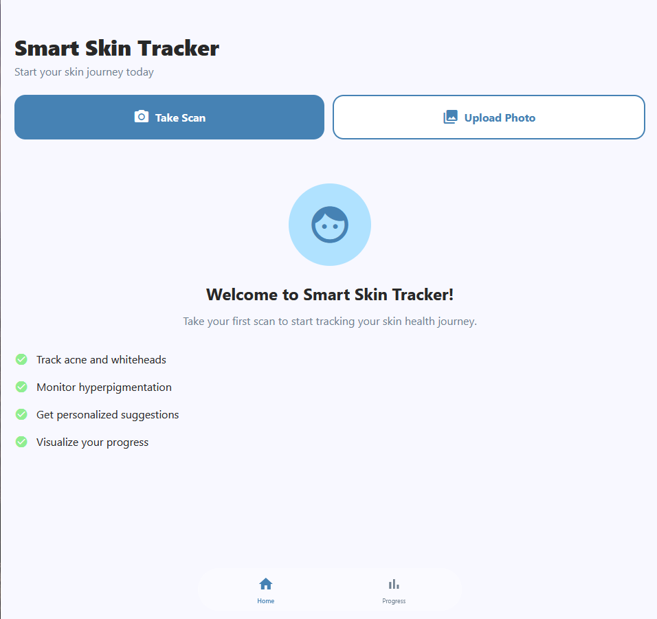 Smart Skin Tracker is a computer vision–based skin tracking application that analyzes your face daily to help you monitor and improve your skin health. It detects acne, highlights whiteheads, measures redness, tracks hyperpigmentation, and visualizes your progress in a clean dashboard.