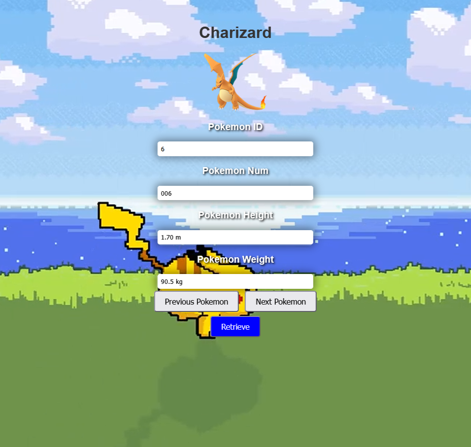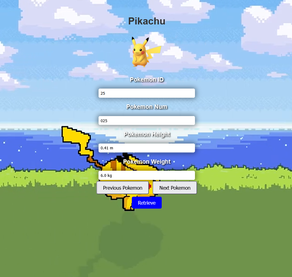 The application supports browsing with next and previous controls, direct lookup using an ID based search, and dynamic rendering of key Pokémon attributes including the image, name, number, height, and weight. Once the dataset is loaded, navigation is smooth and efficient because Pokémon details are pulled directly from memory rather than reloading data every time.